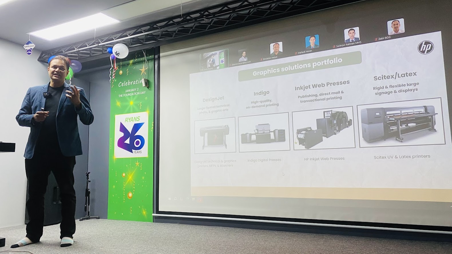 on 12 January. The session was conducted by Mr. Quazi Shamim Hasan, Country Business Manager for Bangladesh, Pakistan, Sri Lanka, and SEMC countries. Sales, hardware, and management teams joined the program, where physical HP DesignJet printers were displayed and participants received live, hands-on experience to better understand product features and improve sales performance.